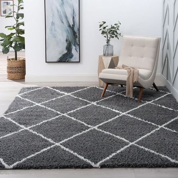 Bliss Rug Geometric Indoor Shag Rug for Living Room, Bedroom, Kids Room |Gray/White, 4' x 6' (4'x5'3'')