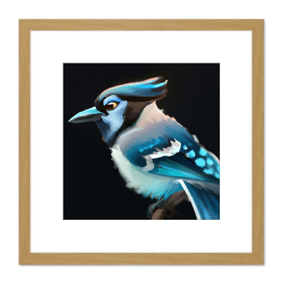 Hero image 0 of Blue Jay Bird Perched Acrylic Paint on Black Paper Portrait Square Wooden Framed Wall Art Print Picture 8X8 Inch, 0 of 4