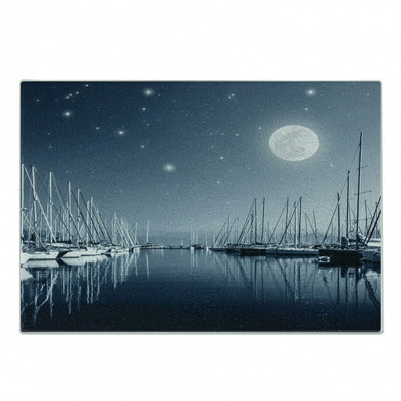 Hero image 0 of Boats Cutting Board, Tranquil Marina View at Night with Stars and Full Moon, Decorative Tempered Glass Cutting and Serving Board, in 3 Sizes, by Ambesonne, 0 of 2