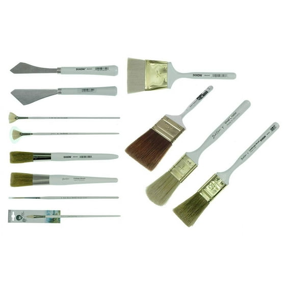 - Set contains one of the following: #3 Fan Blender, #6 Fan Blender, Half Size Round, 1" Round Foliage Brush, #5 Detail Knife, #10 Painting Knife, 2" Blender, #2 Script Liner, #6 Filbert, 2" Background, 1" Oval Bristle, and 1" Landscape brush.