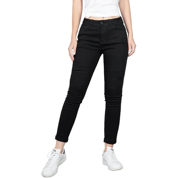 Hero image 0 of BodiLover, Women's, Ripped Ankle Length Mid Rise 5 Pockets Comfy Skinny Cropped Jeans, Black, 17, 0 of 4