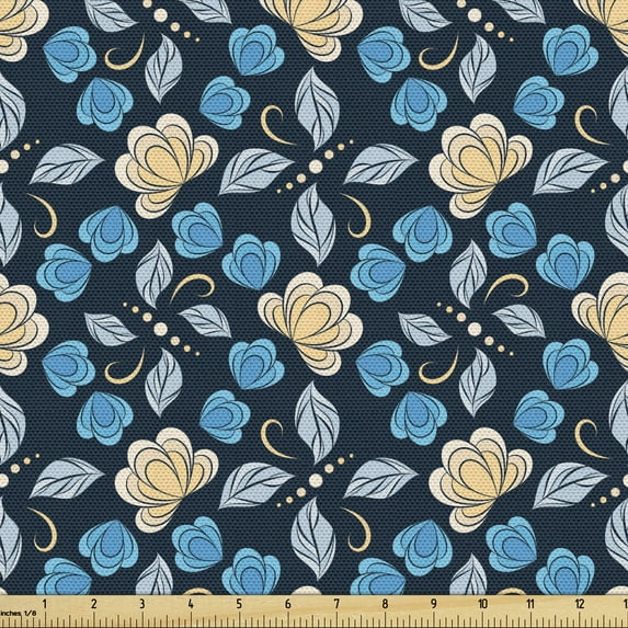 Hero image 0 of Boho Upholstery Fabric by the Yard, Abstract Striped Flowers Leaves and Dots, Decorative Fabric for DIY and Home Accents, Night Blue Multicolor by Ambesonne, 0 of 5