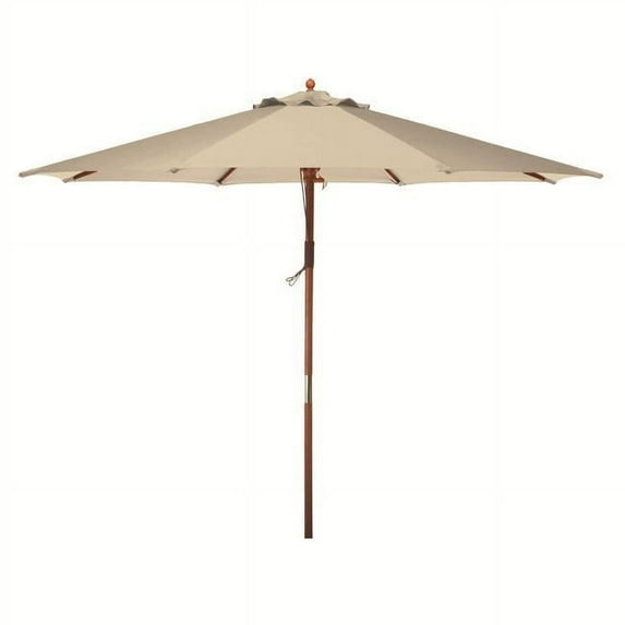 Hero image 0 of 9' Natural Khaki Wooden Outdoor Patio Umbrella, 0 of 2