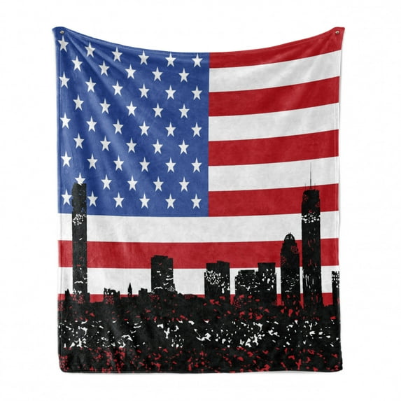 Hero image 0 of Boston Soft Flannel Fleece Throw Blanket, Scattered Skyline of Buildings on Vibrant Color US Flag Background, Cozy Plush for Indoor and Outdoor Use, 50" x 60", Cobalt Blue Black, by Ambesonne, 0 of 6