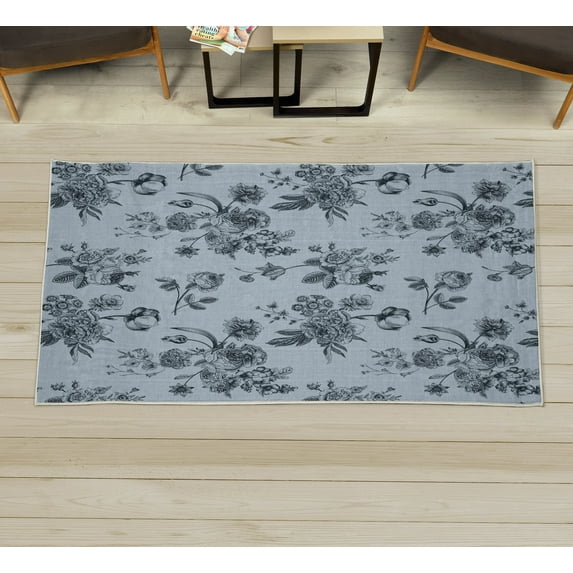 Hero image 0 of Botanical Decorative Rug, Vintage Floral Pattern Victorian Classic Royal Inspired Plants Modern Art, Quality Carpet for Bedroom Dorm and Living Room, 6 Sizes, Blue Grey, by Ambesonne, 0 of 1