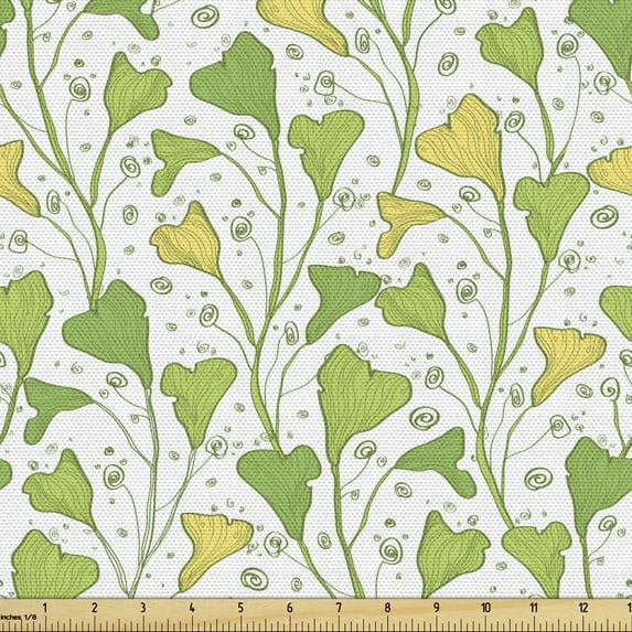Hero image 0 of Botanical Fabric by the Yard, Abstract Illustration of Plantation Curlicue Style Peduncles, Decorative Upholstery Fabric for Sofas and Home Accents, Yellow Apple Green by Ambesonne, 0 of 5