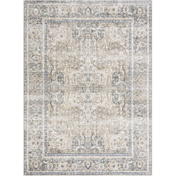 BoutiqueRugs Arias Farmhouse Area Rug - Machine Washable - Beige, Medium Gray, Medium Brown - 7'10" x 10'