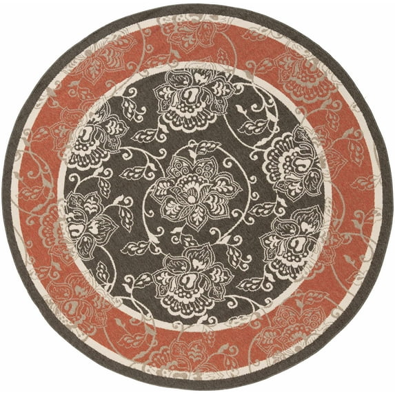 BoutiqueRugs Berryman Traditional Area Rug - Outdoor Safe - Black, Beige, Dark Red - 7'3" Round