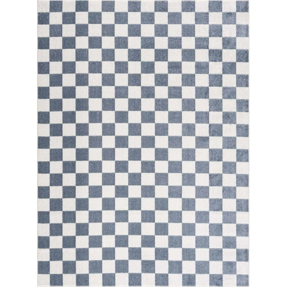 BoutiqueRugs Brone Blue Checkered Area Rug - Machine Washable - Blue, Off White - 2' x 2'11"