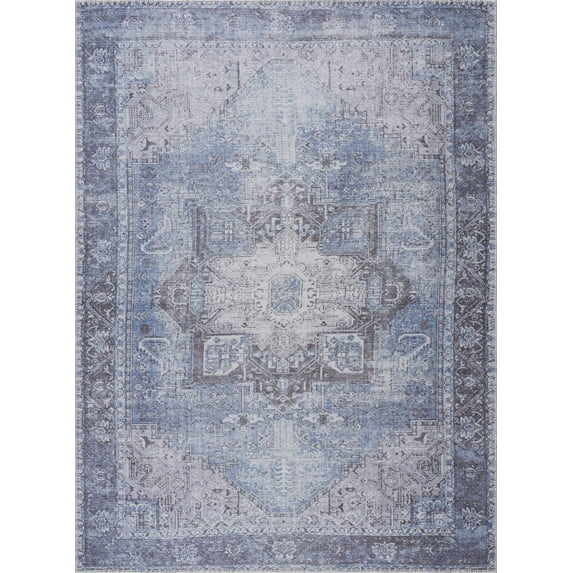 Hero image 0 of BoutiqueRugs Pays Blue Distressed Area Rug - Machine Washable - Sky Blue, Antrasit, Gray - 6'7" x 9', 0 of 11