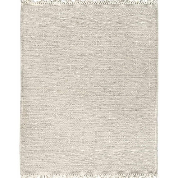 Hero image 0 of BoutiqueRugs Ramsbury Boho Hand Woven Wool High Low Textured Oversized Area Rug - Farmhouse Trellis Pattern with Tassel Carpet for Living Room - Ivory, Cream, Gray - 8'10" x 12' (9x12), 0 of 13