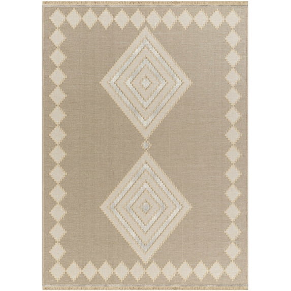 BoutiqueRugs Ziggy Bohemian Jute and Cotton Natural Fiber Textured Area Rug - Boho Moroccan Geometric Carpet for Living Room, Bedroom - Machine Washable - Peach, Beige - 5'2" x 7' (5x7 Area Rug)