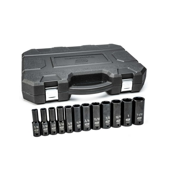 - Comprehensive Set: Includes a range of Deep SAE Impact Sockets from 3/8" to 1-1/16", housed in a blow mold case with reinforced steel hinges and buckles for secure storage.