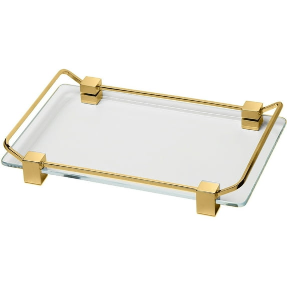BoxMetal Bathroom Vanity Countertop Guest Towel and Organizer Tray, Brass, Glass