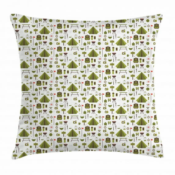 Hero image 0 of Boy Scout Throw Pillow Cushion Cover, Backpack Axe Tent Lantern Camp Concept Adventure Barbecue Graphic, Decorative Square Accent Pillow Case, 24 X 24 Inches, Olive Green Brown Coral, by Ambesonne, 0 of 2