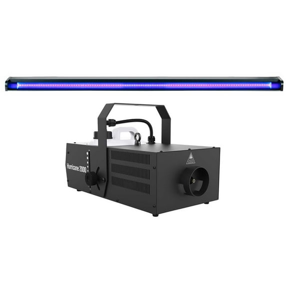 - Package Includes: (1) Chauvet DJ Hurricane 2000 Professional DMX Fog Machine Fogger W/ Built-In Timer. (1) American DJ UVLED 48 Stage Party Black Light Strip Bar 48" Fixture w/SMD UV LEDs. What's In The Box: Hurricane 2000. Power Cord. Features: Chauvet DJ Hurricane 2000 Professional DMX Fog Machine with Built-In Timer. DMX Channels: 1. DMX Connectors: 3-Pin and 5-Pin XLR. Heat-Up Time: 3 Min