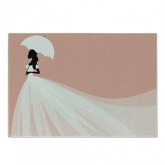 Hero image 0 of Bridal Shower Cutting Board, Bride in Abstract Romantic Wedding Dress with Umbrella Art Print, Decorative Tempered Glass Cutting and Serving Board, Small Size, Salmon and White, by Ambesonne, 0 of 1