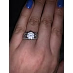 I absolutely love it I like simplicity and this ring was everything I didn't want and beautiful it fits perfectly for me and so my fiance bought it for me were already engaged and I was showing him what I needed which was white gold and I can't tell between diamonds and cubic zirconia and I love it