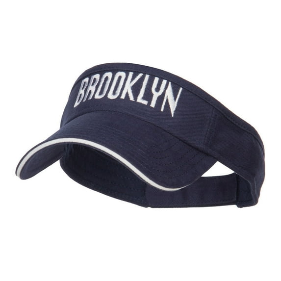 Brooklyn Embroidered Sandwich Bill Visor - Navy White OSFMBrooklyn Embroidered Sandwich Bill Visor Navy White OSFMBrooklyn Embroidered Sandwich Bill Visor Black White OSFM