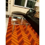 This glass top table is exactly what I was looking for. It arrived in perfect condition. Assembly was very easy. I'm not handy and was able to put it together myself. It has clean lines and is extremely sturdy. I can't find any negatives. It looks beautiful in my living room. I highly recommend it!