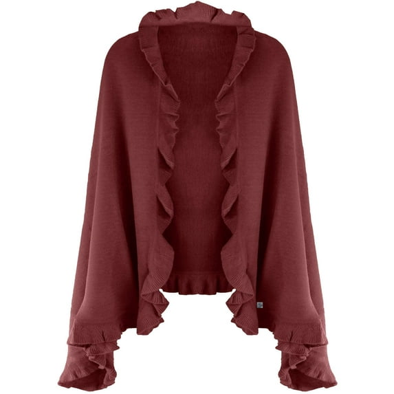 $3999current price $39.99Ruffle Trim Knit Poncho-like Shawl Wrap. 44"x78". one Piece. Mocha