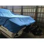 5 stars. When I bought this online I was a little worried that this wouldn't be wide or long enough to cover my boat. I have it under a carport, but leaves, rain, dirt, and dust will blow into the boat on windy days. I was pleasantly surprised when not only did it cover the boat, but most of the motor as well as far down on both sides. My 600 Denier is completely waterproof so it keeps everything out. Wish I had bought this sooner. Very happy.