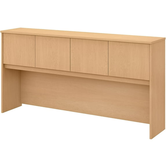 With ample storage and a contemporary finish, the Bush Business Furniture Studio C hutch brings beauty and functionality to any professional office. With four doors featuring self-closing Euro-style hinges, the hutch conveniently stores office supplies, books, and more to keep your Bush Business Furniture Studio C desk organized. The hutch mounts to the office desk or credenza desk (sold separately) and provides a fully finished back panel. Add a coordinating tackboard (sold separately) to keep your important notes within sight while you work. The thermally fused laminate construction resists scratches, stains, and damage throughout your workweek. The classic hutch design is available in your choice of several contemporary or traditional finish options to fit any workspace. This four-door hutch comes with a 10-year warranty and meets ANSI/BIFMA quality test standards. Hutch with doors conveniently stores office supplies, books, and more, increasing the storage capacity of your office or remote workspace. Features a contemporary style. Made of laminate over composite wood and comes in a natural maple finish. Assembly required. Dimensions: 36"H x 70.94"W x 14.53"D. Thermally fused laminate finish fends off scratches and stains to protect the hutch. Four doors provide plenty of storage space and include self-closing Euro-style hinges. Fully finished back panel and wire access for cable management. Mounts to a Bush Business Furniture Studio C office desk or credenza desk (sold separately). Coordinating tackboard available (sold separately). Available in your choice of several contemporary and traditional finishes to fit any work environment. Meets or exceeds ANSI/BIFMA standards. American-made with US and imported parts. 10-year manufacturer limited warranty. Sold as 1 Each.