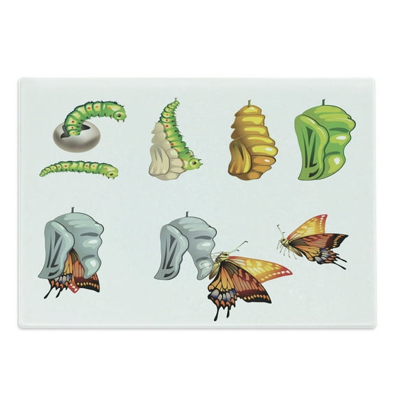 Hero image 0 of Butterfly Cutting Board, Butterfly Stages with the Cocoon Life Cycle Nature Print Illustration, Decorative Tempered Glass Cutting and Serving Board, Large Size, Multicolor, by Ambesonne, 0 of 1