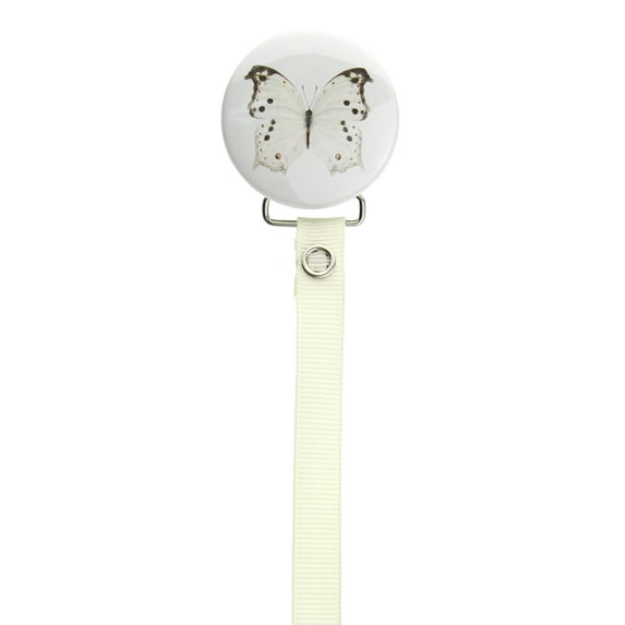 Butterfly Pacifier Clip with Matching Ribbon This just makes you smile! Perfect for a little diva or man! Original and affordable, that would make this a perfect baby gift. These Pacifier Clips are hand decorated in Brooklyn NY especially for you, the res