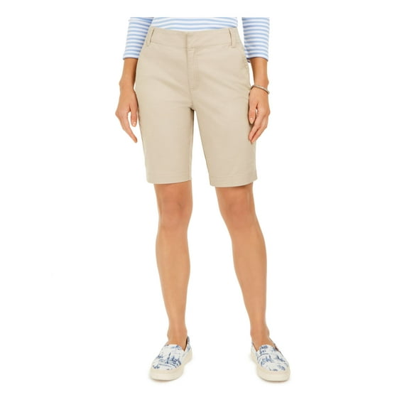 Hero image 0 of CHARTER CLUB Womens Beige Stretch Pocketed Mid Rise Bermuda Shorts 14, 0 of 2