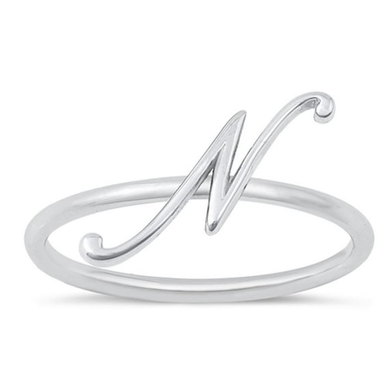 CHOOSE YOUR STYLE Script "N" Ring .925 Sterling Silver Initial Letter Band Jewelry Female Size 6