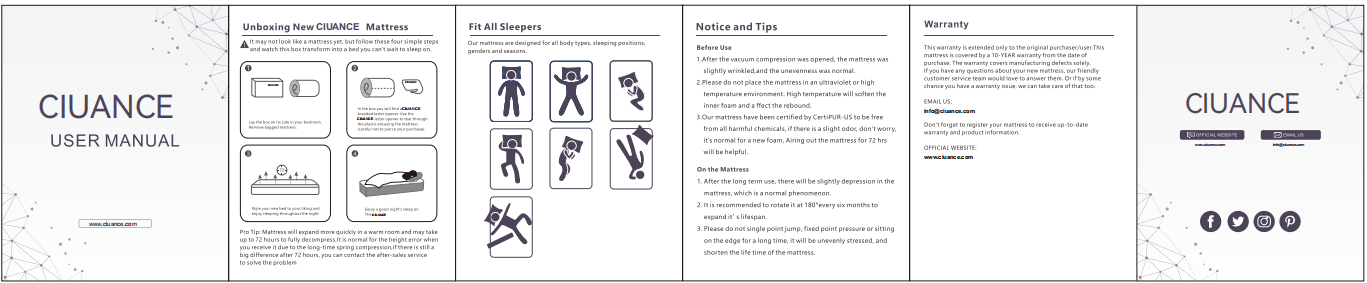 Suitable for All Ages:CIUANCE mattress for all ages, comfort and health at the same time.