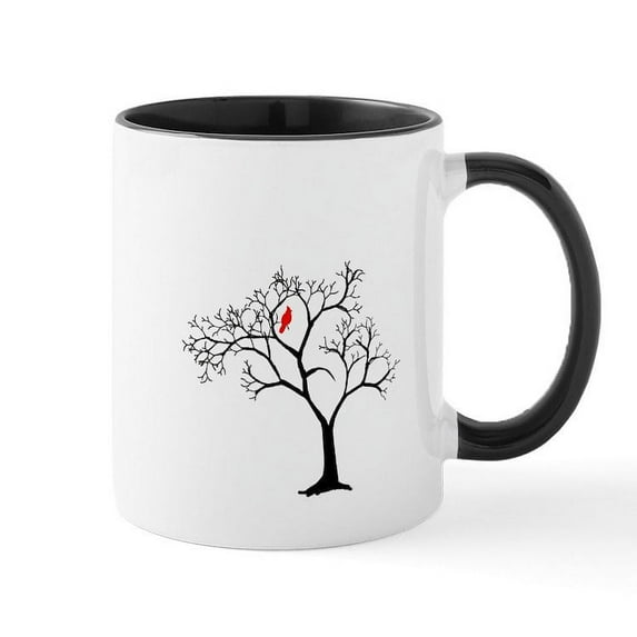 CafePress - Cardinal In Snowy Tree Mug - 11 oz Ceramic Mug - Novelty Coffee Tea Cup
