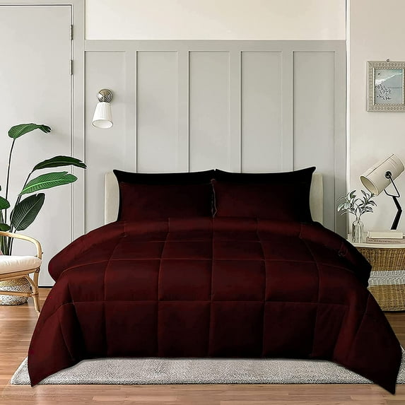 Cal-King 1 PC Comforter And 2 Pillowcase Solid Wine Luxury Premium Collection Microfiber Fill Lightweight Duvet Insert Box Stiched Quilted Fluffy Soft All Season Cooling Comforters