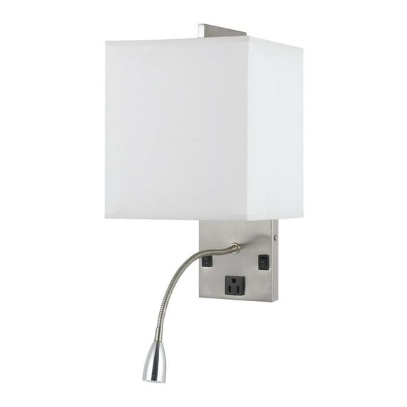 Cal Lighting 60W metal wall lamp with rocker switch and 1W LED gooseneck reading light in Brushed steel silver finish.