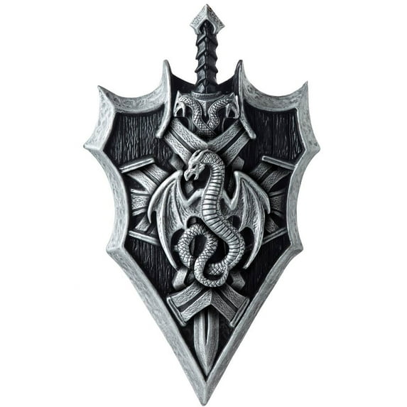 - Dragon Themed: The set is distinctly dragon-themed, featuring a dragon-headed sword and a full dragon shield.