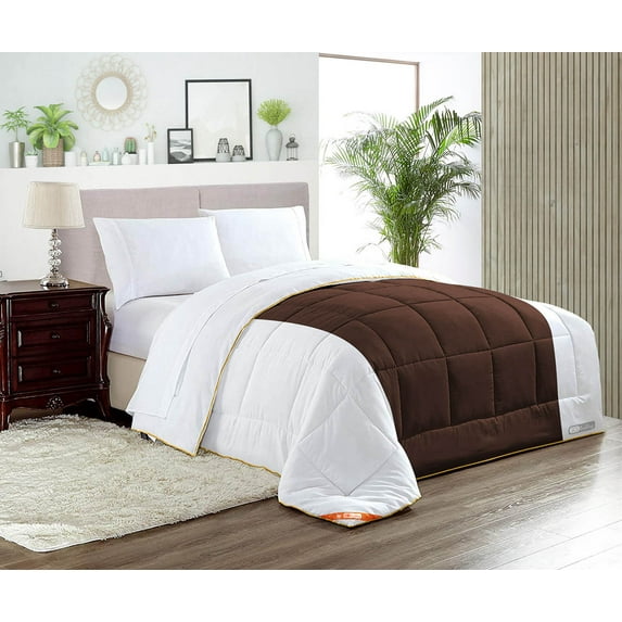 Hero image 0 of California King Comforter Contrast Chocolate 300 GSM Plush Siliconized Microfiber Fill Duvet Insert With 1000 Thread Count Egyptian Cotton Shell Fluffy with Piping & Matching Pillowcases, 0 of 8