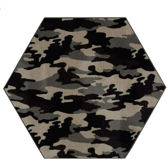 Camouflage Smoke Screen Area Rug for Living Room, Dining Room, Kitchen, Bedroom, Kids, Made In USA - 12' Hexagon