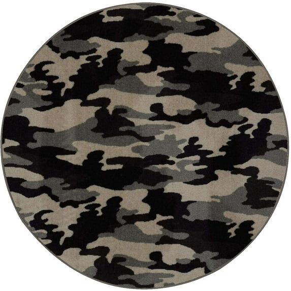 Hero image 0 of Camouflage Smoke Screen Area Rug for Living Room, Dining Room, Kitchen, Bedroom, Kids, Made In USA - 8' Round, 0 of 2