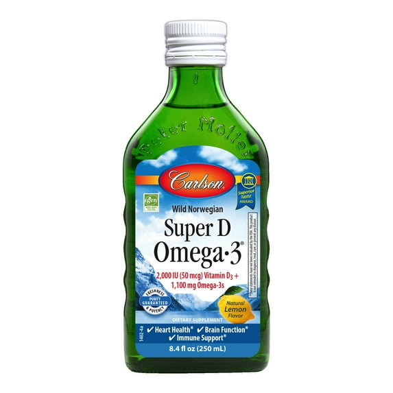 8204.8 out of 5 Stars. 820 reviewsSave withShipping, arrives in 2 daysCarlson Wild Norwegian Super D Omega-3®, Natural Lemon, 6.7 fl oz (200 ml) $24.94