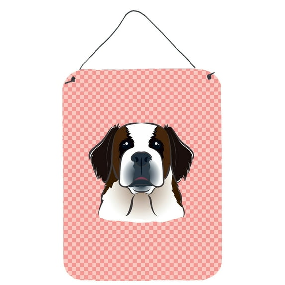 Caroline's Treasures BB1246DS1216 Checkerboard Pink Saint Bernard Wall or Door Hanging Prints, 12x16, multicolor Wall or Door Hanging Prints featuring breed specific Saint Bernard artwork from one of our artists or graphic designers. Indoor or Outdoor Aluminum multicolor artwork prints will add a special touch to your kitchen, bath, front door, office, outdoor patio, porch or any other special place. These prints measures 12 inches by 16 inches and printed in full color. This item can be placed outside and will take direct sun for a while before it starts to fade. Rust and Fade resistant. Aluminum Print with Black Hanging Rope. The corners are rounded for safety. The back of the print is a brushed silver color. This is a lightweight print and can be hung easily with almost any nail or screw. This Metal Print is from Caroline's Treasures Dogs category of products.