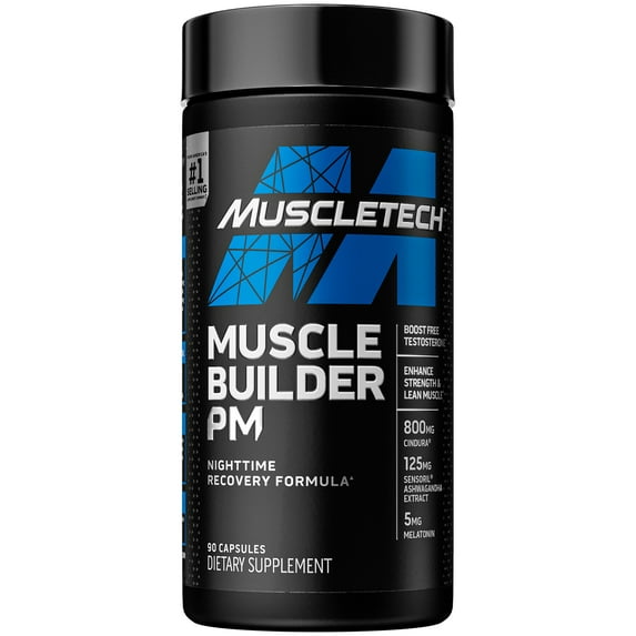 Muscletech Muscle Builder PM, Nighttime Recovery, Boost Free Testosterone, 90 Capsules, Unflavored