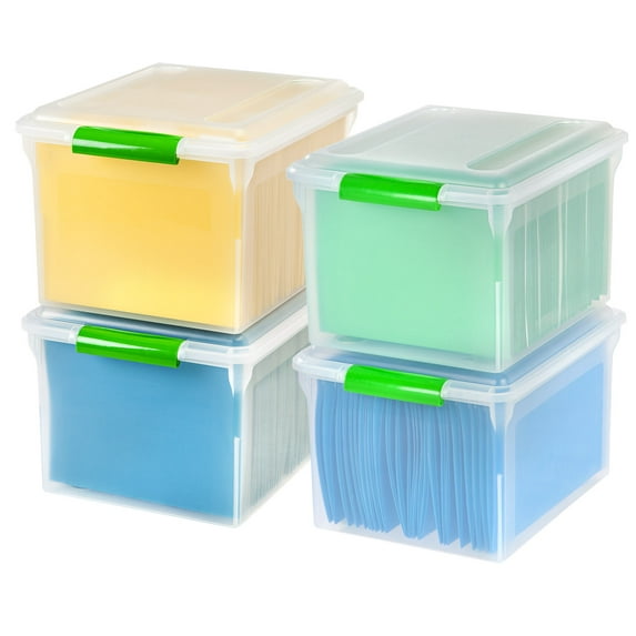 Hero image 0 of IRIS USA File Box File Organizer Plastic File Box for Letter/Legal File, BPA-Free Plastic Storage Bin Tote Organizer w/ Secure Latching Lid and Easy-Slide Pad, Clear 35 Qt. 4Pack, 0 of 7