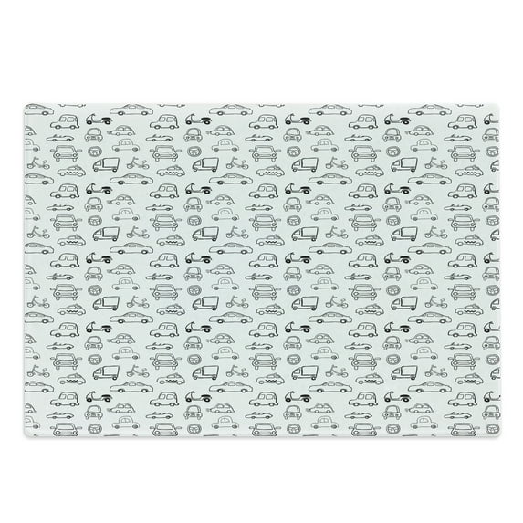 Hero image 0 of Cars Cutting Board, Transportation and Automotive Industry Themed Sketch Art Style Print, Decorative Tempered Glass Cutting and Serving Board, Large Size, Black and White, by Ambesonne, 0 of 1