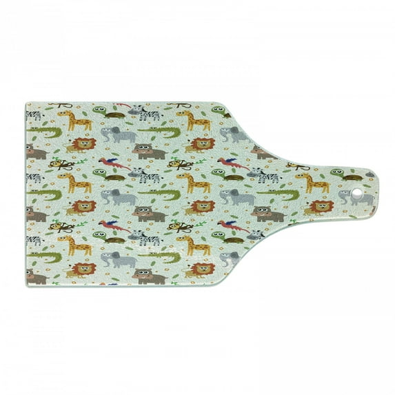 Cartoon Animal Cutting Board, Australian Fauna Silly Faces Safari Lion Crocodile, Decorative Tempered Glass Cutting and Serving Board, Wine Bottle Shape, Multicolor, by AmbesonneCartoon Animal Cutting Board Australian Fauna Silly Faces Safari Lion Crocodile Decorative Tempered Glass Serving Wine Bottle Shape Multicolor AmbesoCartoon Animal Cutting Board Australian Fauna Silly Faces Safari Lion Crocodile Decorative Tempered Glass Serving Large Size Multicolor Ambesonne