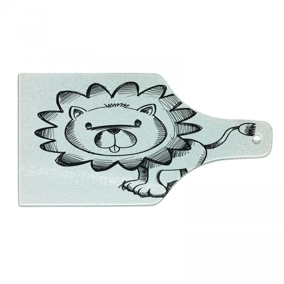 Cartoon Cutting Board, Sketchy Lion Wildlife Character Safari Jungle Savanna Habitat Theme, Decorative Tempered Glass Cutting and Serving Board, Wine Bottle Shape, White Black, by AmbesonneCartoon Cutting Board Sketchy Lion Wildlife Character Safari Jungle Savanna Habitat Theme Decorative Tempered Glass Serving Wine Bottle Shape White BCartoon Cutting Board Sketchy Lion Wildlife Character Safari Jungle Savanna Habitat Theme Decorative Tempered Glass Serving Large Size White Black AmCartoon Cutting Board Sketchy Lion Wildlife Character Safari Jungle Savanna Habitat Theme Decorative Tempered Glass Serving Small Size White Black Am