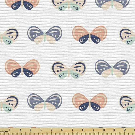 Hero image 0 of Cartoon Fabric by the Yard Upholstery, Spring Theme Repetitive Butterfly Sketches with Colorful Pastel Tones, Decorative Fabric for DIY and Home Accents, White and Multicolor by Ambesonne, 0 of 5