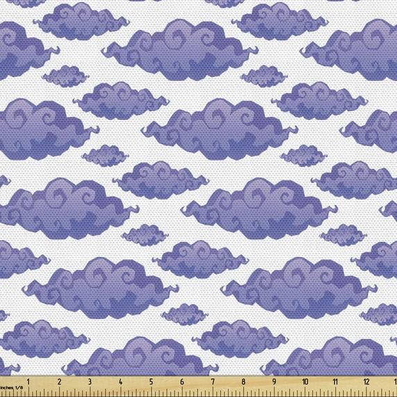 Hero image 0 of Cartoon Fabric by the Yard Upholstery, Style Repeating Curly Clouds Design Sky Elements with Swirls, Decorative Fabric for DIY and Home Accents, Violet and White by Ambesonne, 0 of 5