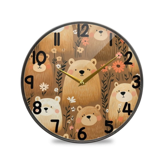 Cartoon Style Bears Round Acrylic Wall Clock Silent Battery Operated Home Decor for Living Room Bedroom