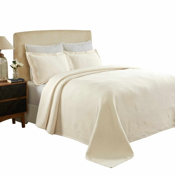 Cascade Cotton Jacquard Matelassé 3-Piece Bedspread Set Ivory / full